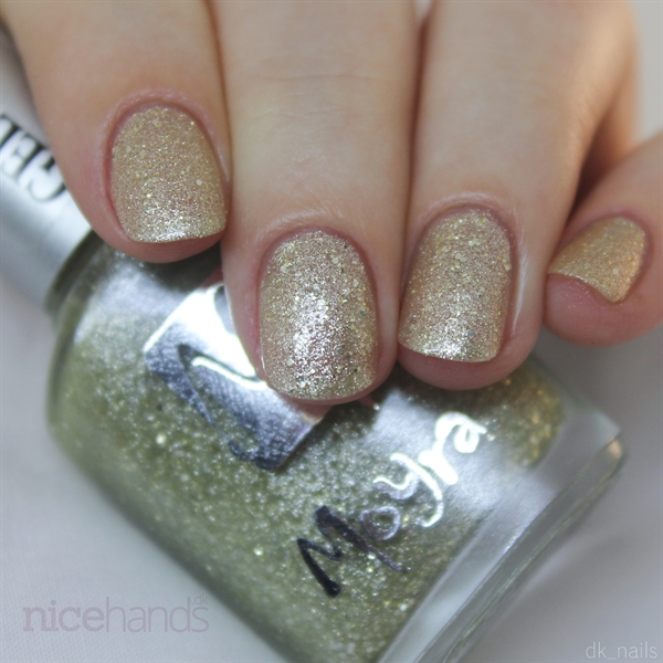Larissa er en flot og effektfyldt glimmer neglelak i guld med flotte gyldne undertoner. Larissa består af en gennemsigtig base med høj intensitet af shimmer og glimmerstykker. Grundet den høje koncentration af shimmer og glimmer får Larissa et drøn flot farvespil og er heldækkende ved 2 - 3 lag. Larissa tørrer op og bliver en smule ru i overfladen. Ønsker man ikke dette, kan man blot afslutte lakeringen med en god topcoat fx.