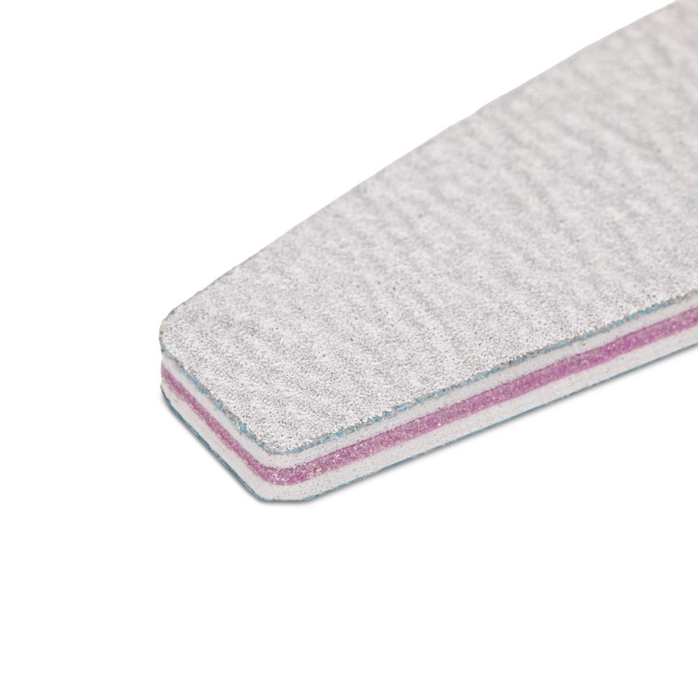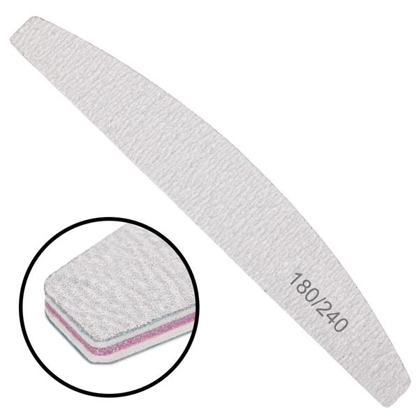 En universel engangsneglefil i bådform med 180/240 korn til naturlige og forlængede negle med ekstremt holdbare komponenter og lang levetid.