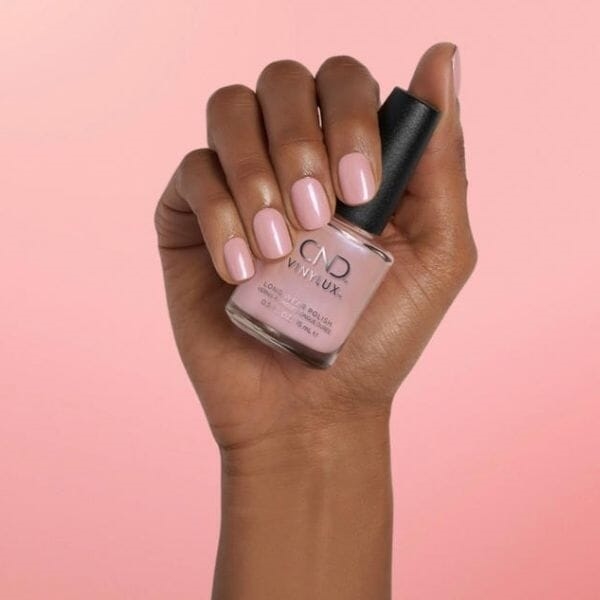 CND Vinylux Blush Teddy er en svag rosa neglelak, med et diskret udtryk. Neglelakken er heldækkende ved 2 tynde lag og giver et feminint look.