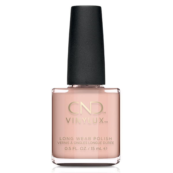 CND Vinylux Skin Tease er en lys beige neglelak uden shimmer. Den er meget fin og naturlig og giver et feminint og klinisk look. Neglelakken er i familie med de populære nude farver som får fingrene til at syne længere.