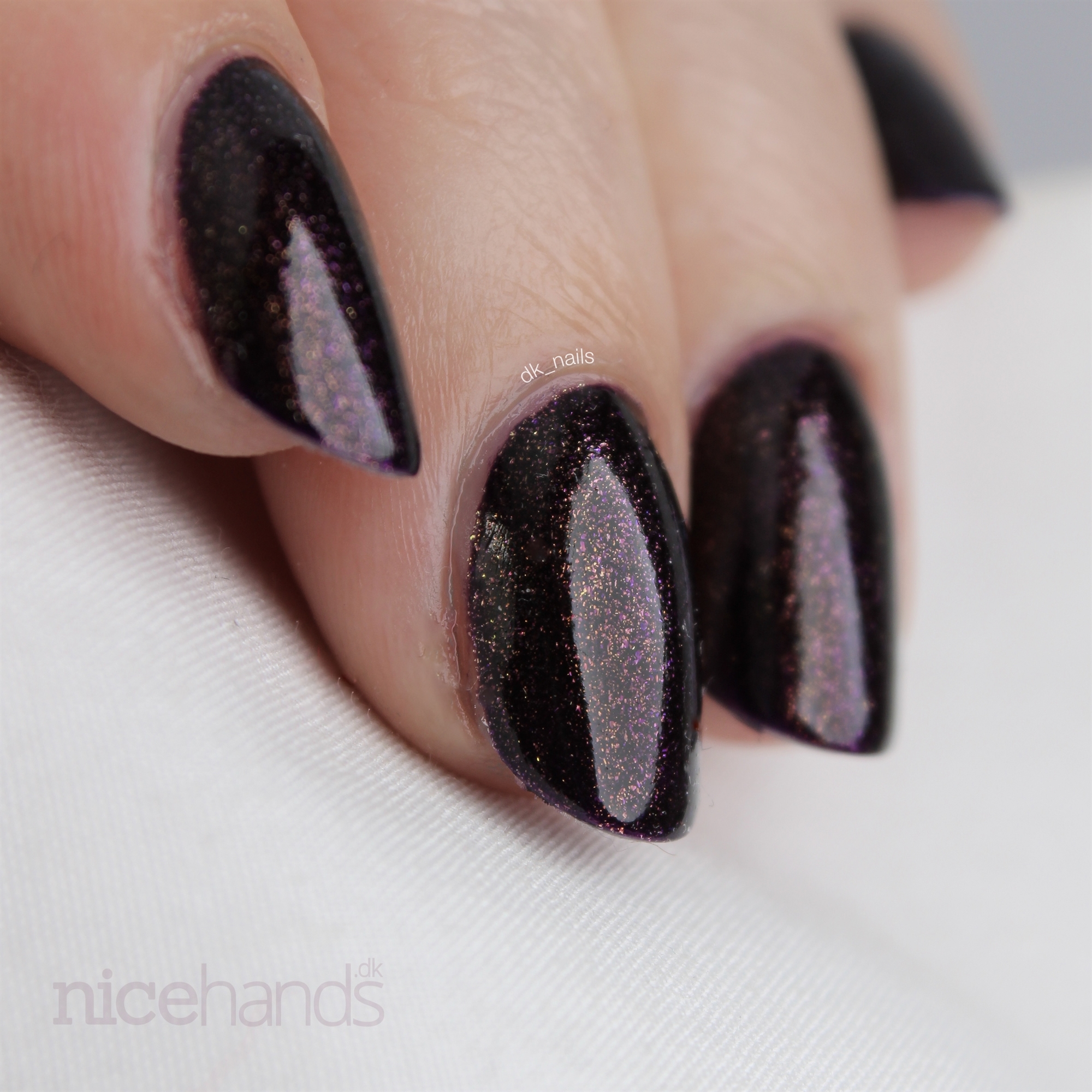 Avril er en sindsygt flot lilla neglelak med det flotteste guld shimmer i. Det flotte shimmer funkler og giver neglelakken så meget dybde og liv. Avril er heldækkende ved 2 tynde lag.