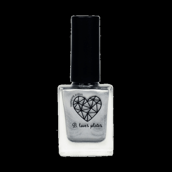 B. a Silver Dust er en ultraflot og glitrende sølv stamping neglelak. Den absolutte musthave farve i din stamping samling. Neglelakken er kraftigt pigmenteret og en lille smule tyk, hvilket gør den perfekt at stampe med.