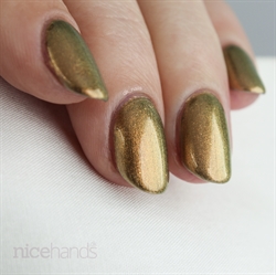 Guld: Guld og grøn er en luksuriøs kombination, der bringer elegance til dit negledesign. Den gyldne glans, som guld neglelak giver, kontrasterer smukt med de forskellige grønne nuancer og tilføjer en sofistikeret touch.