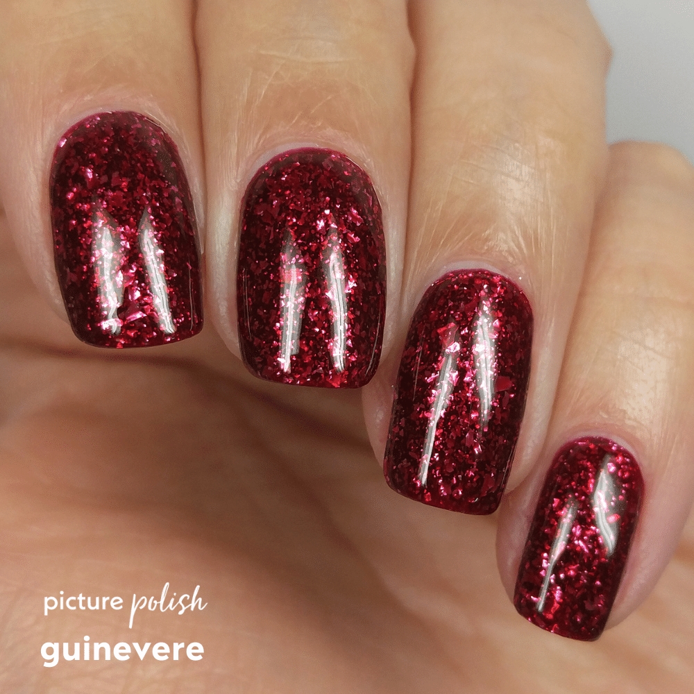 Guinevere – Rød neglelak med sølvflager