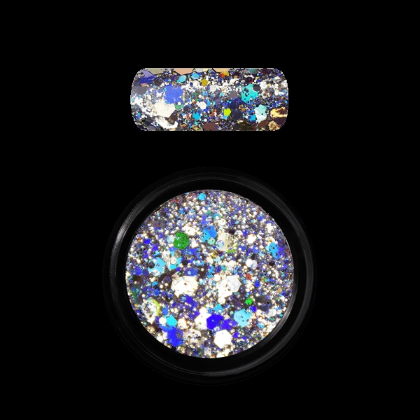 Dette fede Holo Glitter Mix består af Hexagon formet glitter og fint glitter pulver i farven sølv. Denne sammensætning er med til at give et fedt og effektfuldt look. Mikset er tilmed holografisk hvilket gør effekten endnu mere funklende.