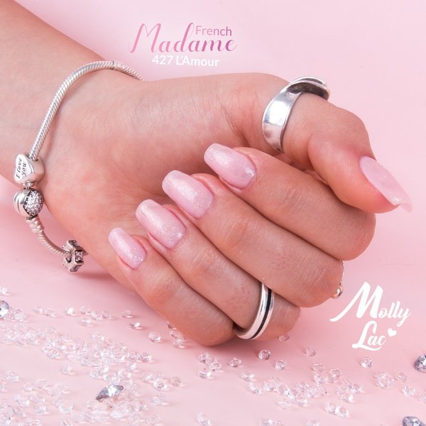 L'Amour No. 427 er en lyserød gelpolish med glitrende shimmer partikler. Nuancen er virkelig fin og feminin.