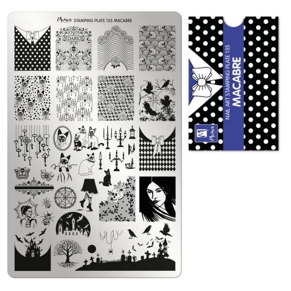 Macabre er en stampingplade fra Moyra som er inspireret af Markabre ting. Så er du vild med uhyggelige og dystre genstande er denne stampingplade lige noget for dig.