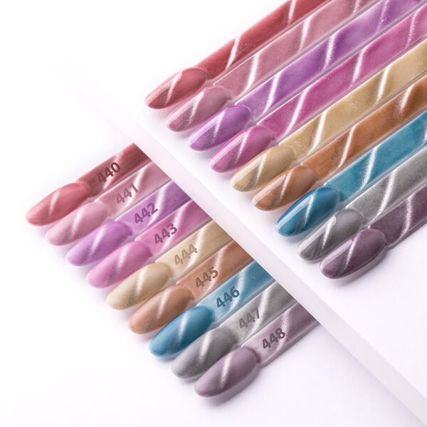 En sensuel og elegant gelpolish fra Cat Eye Womanity-kollektionen med magnetisk “cat-eye” effekt og fin, diskret flashshimmer. Nr. 446 – En turkis blå gelpolish byder på et sofistikeret farvespil, hvor de magnetiske partikler skaber en smuk tredimensionel dybde, mens shimmeren tilfører et eksklusivt strejf af glans. Resultatet er et moderne, feminint look med klassisk elegance – perfekt til både salon og hjemmebrug.