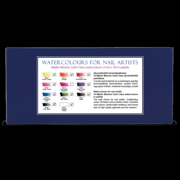 Mijello Akvarel Mini Set nr. 3, Moyra, er et sæt af 10 pigmentrige, levende vandfarver i en praktisk palet. Disse akvarelfarver er af højeste kvalitet, takket være den særlige teknologi, som Mijello anvender til at fremstille dem. Med dette sæt kan du skabe en mangfoldighed af nuancer og udtryk i dit kunstværk.