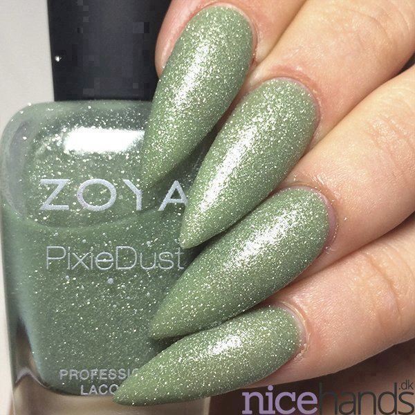 Vespa er en PixieDust neglelak i farven mos grøn. Neutral i udtrykket, men yderst iøjefaldende. Intensitet: 5 ( 1 = Gennemsigtig- 5 = heldækkende) Denne neglelak er fra serien "PixieDust" som er en af bestsellerne ved Zoya. PixieDust neglelakkerne er tekstur neglelakker, hvilket vil sige at de tørrer en anelse ru op. Neglelakkerne er helt fantastisk smukke og fordi de er så pakket med smukke effekter får neglene et 3D lignende look. Ønsker man ikke at have det ru look på neglene kan man bruge Zoya Topcoat over eller CND Vinylux Topcoat over. 1-2 lag topcoat og lakken er endnu mere skinnende og du undgår det ru look.